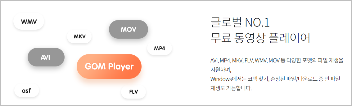 곰플레이어에서는 mp4, avi, mkv, flv, wmv, mov 등의 다양한 비디오 파일을 재생할 수 있습니다.