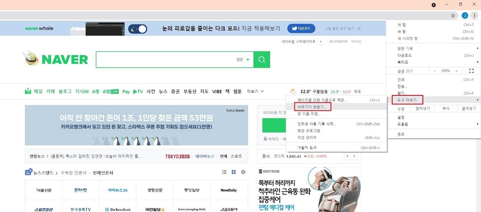 주로 사용하시는 브라우저에 적용해서 네이버 바로가기를 만드시는것이 좋을것같아요