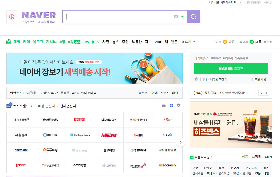 과거에는 한메일 요즘에는 다음이라는 포탈이 인기였지만 지금은 다음에서 네이버를 사용하는 사람들이 더 많아졌습니다