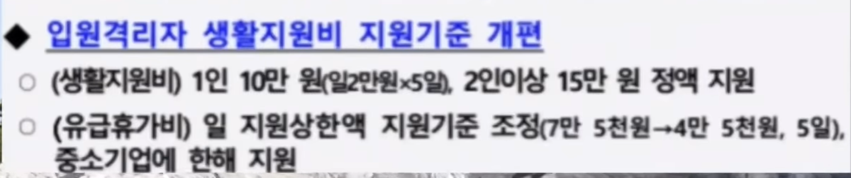 3월 16일부터 정부가 격리 인원과 기간에 따라 차등지급했던